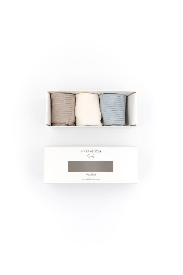- Scatola con 3 paia di calze realizzate a partire dalla fibra di bambù organico, un materiale dalle proprietà termoregolatrici ed anallergiche