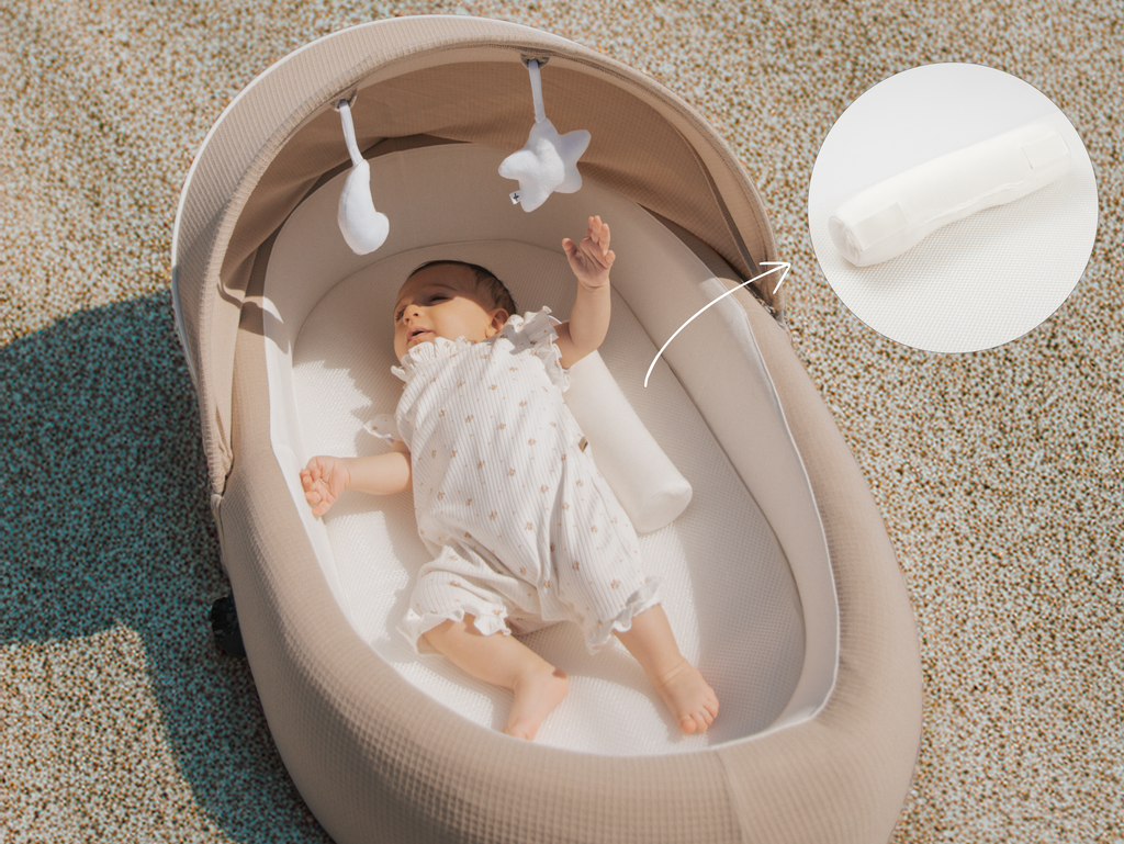 Il nuovo Babynest Airflow 2.0 è realizzato con un materassino a doppia funzione: da un lato ha un tessuto 3D mesh ultra traspirante, dall’altro uno strato anti-pipì. È dotato di un nuovo supporto: un rullino perfetto per sostenere schiena, ginocchia e favorire il tummy time.