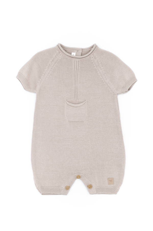 Il pagliaccetto con tasca è una pratica ed elegante tutina in morbido filato di bambù