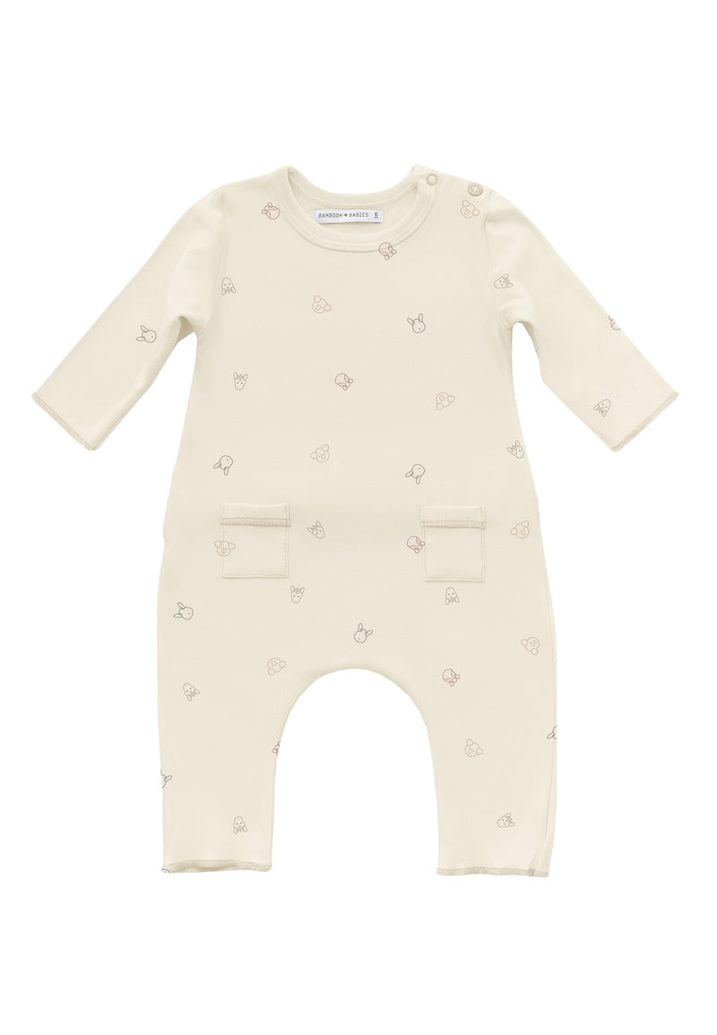 La tutina Pure è una tuta intera con bellissime taschine sul davanti dotata di pratiche clip di chiusura sul dietro e morbide cuciture.